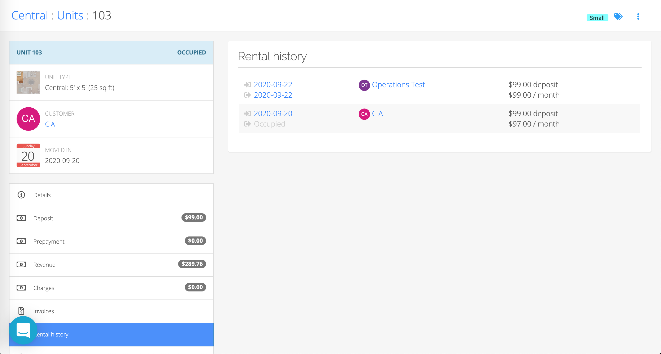 Each unit has a detailed history section where you can see the full rental history for the unit.