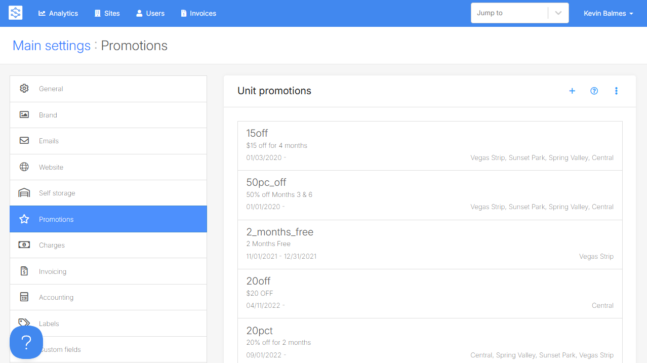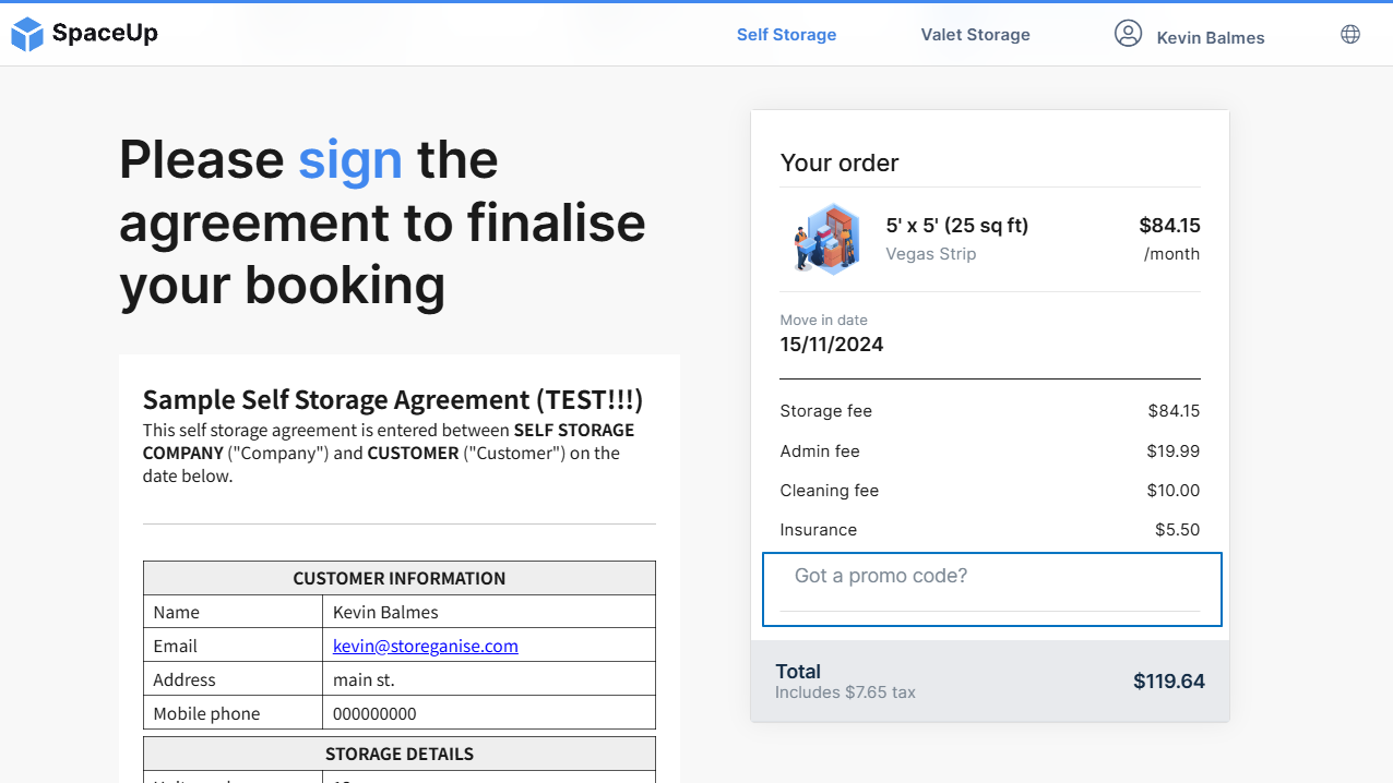 Promo codes can be used to (i) apply discounts to self-storage units, and (ii) track the efficacy of marketing campaigns.