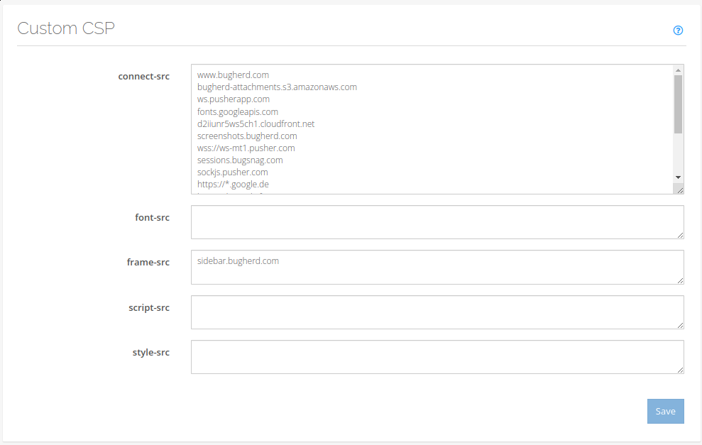 Note that changing CSP headers can make your website and customer portal more vulnerable to attacks so should be done with care.
