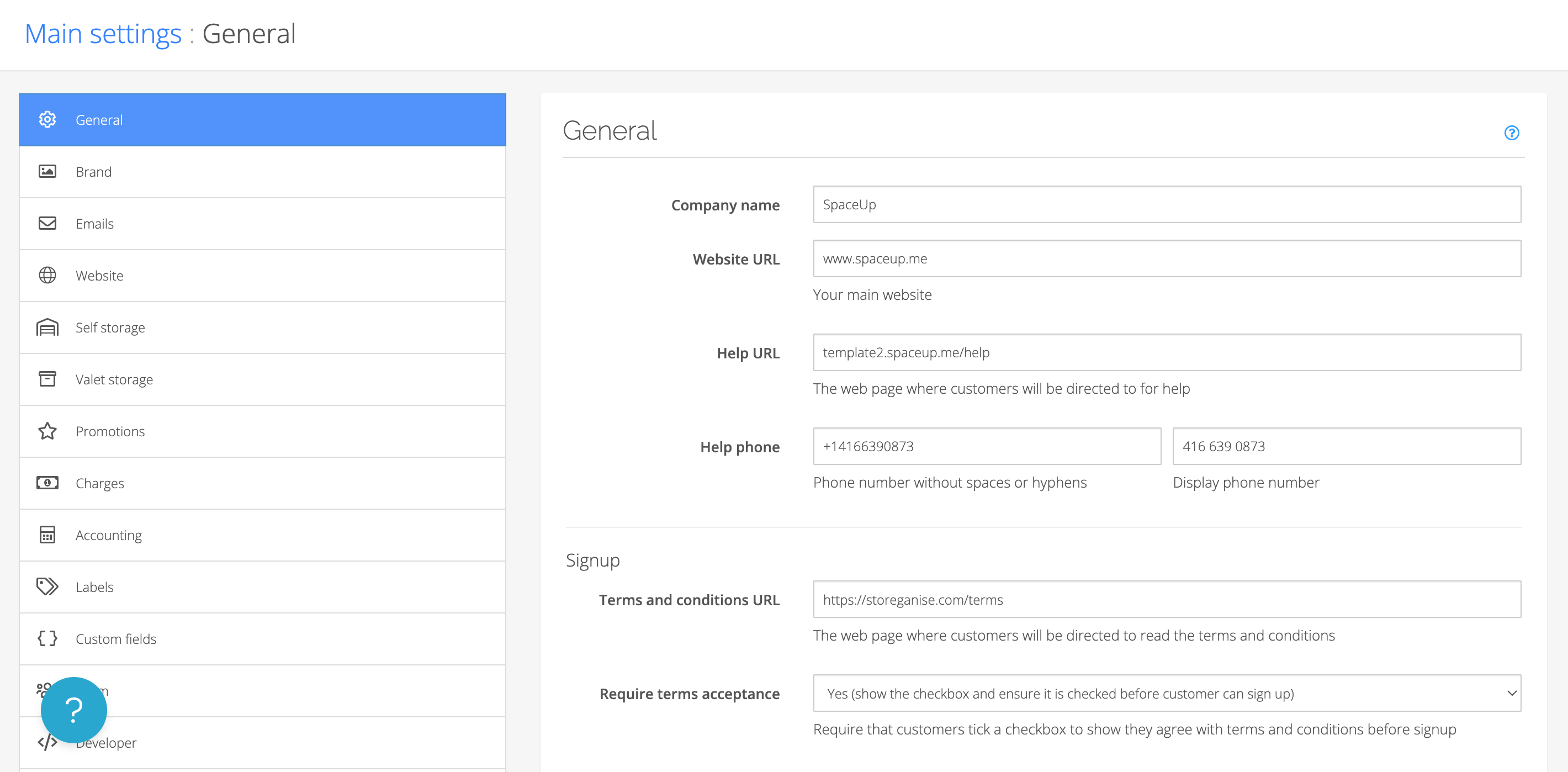 Welcome to Storeganise!This document is the first of five setup guides intended to provide essential settings and general information for establishing a new account. While our support staff will assist you during onboarding and training calls to set up your business, the content here aims to offer an overview of your new Storeganise instance, allowing you to familiarize yourself with the system promptly. . If there is any confusion or hesitation we will of course be here to help, but we encourage you to begin configuring these settings yourself.Main Settings
