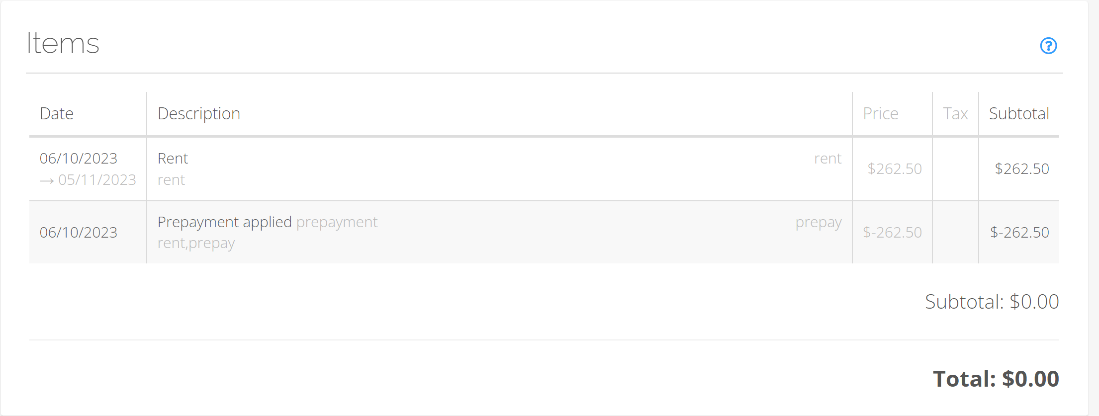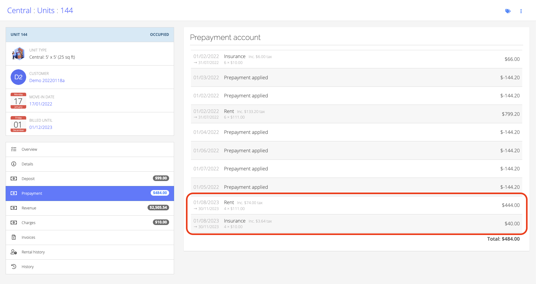 Prepayments are amounts that the user can pay in advance. They are collected in the Prepayment section on its specific Unit page. That Unit's rent is deducted from this balance according to the billing cycle automatically.
