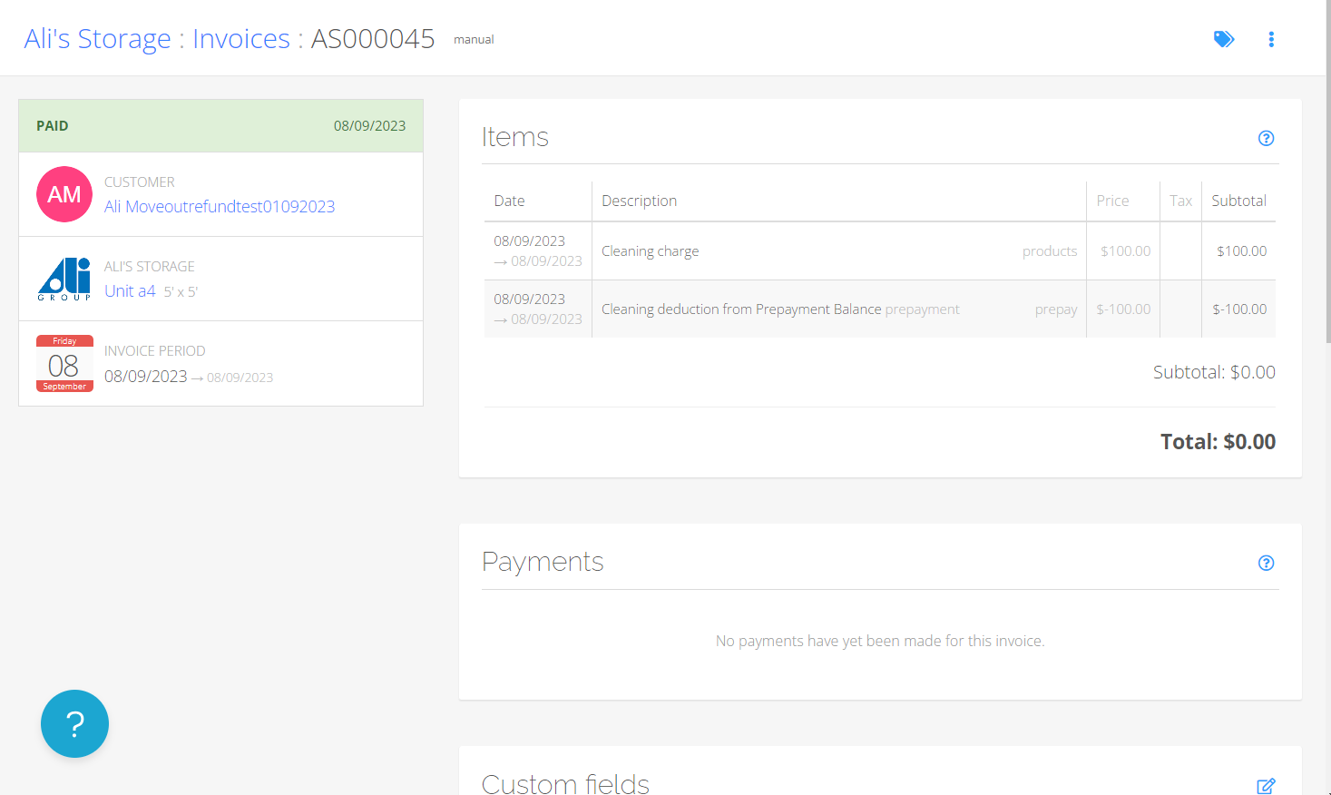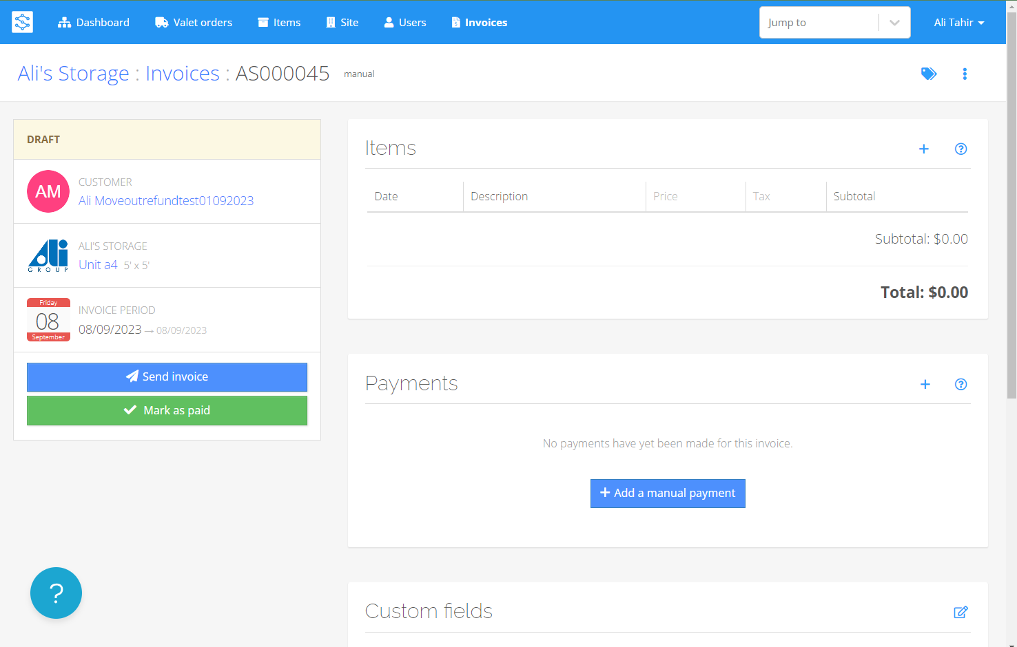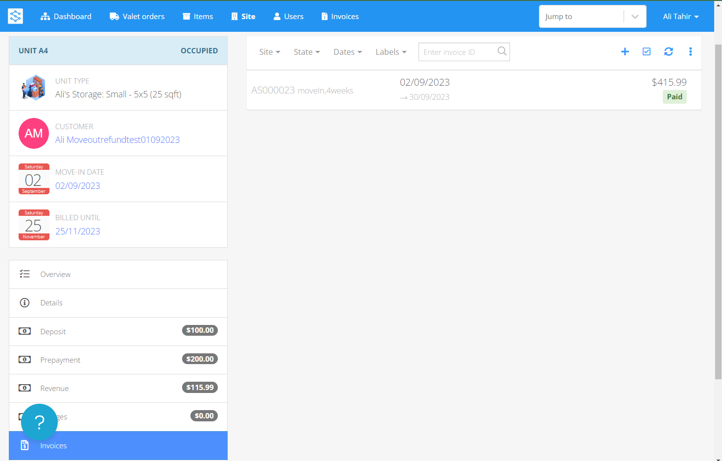 - Navigate to the invoice section on the Unit's page.
