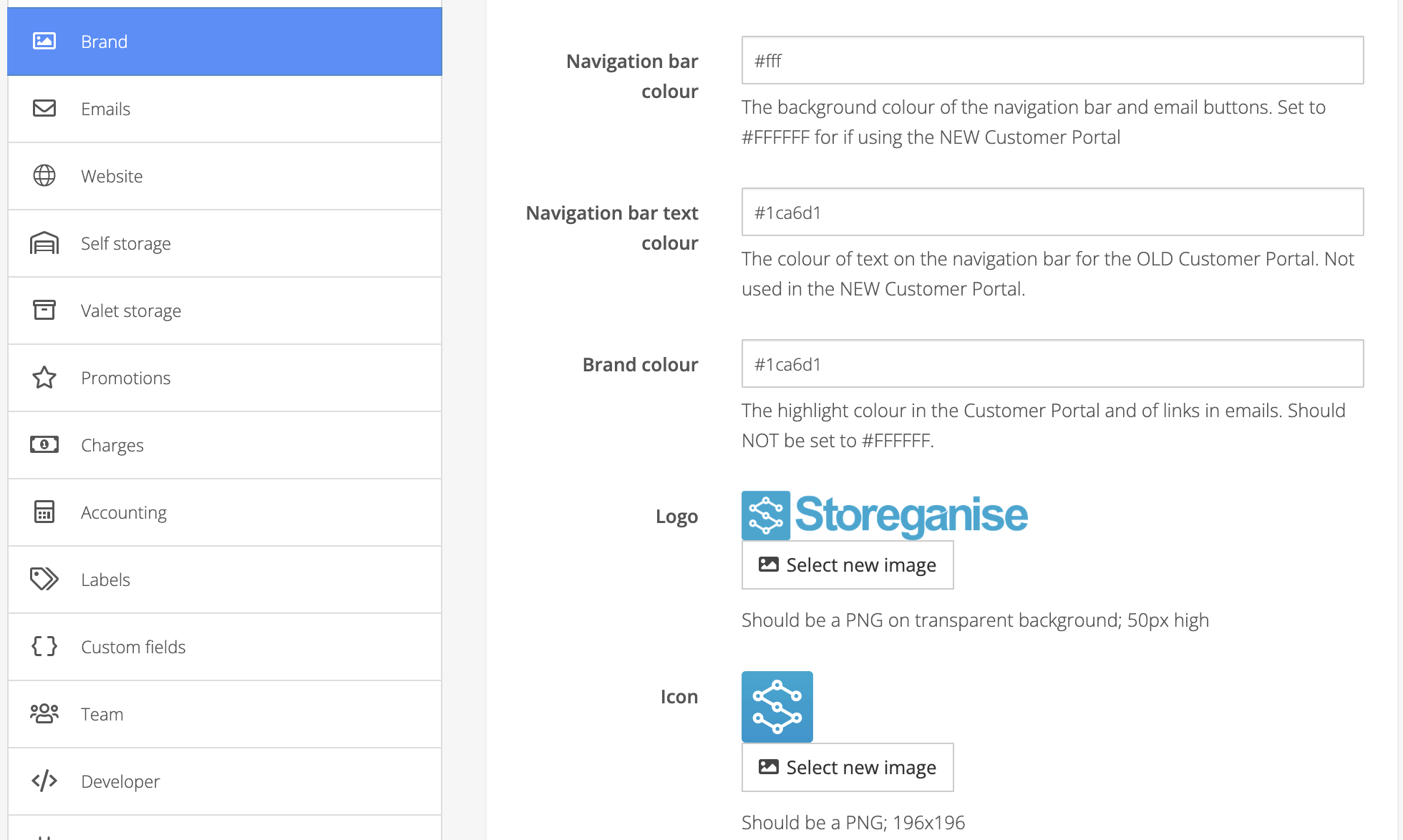 There are 2 images in your Storeganise account that relate to your business as a whole. In particular, it is recommended to carefully design and select your logo image so that it displays optimally throughout your customer-facing presence.To configure your 2 brand images, navigate to your Main Settings and click on the Brand section to upload or update these images.