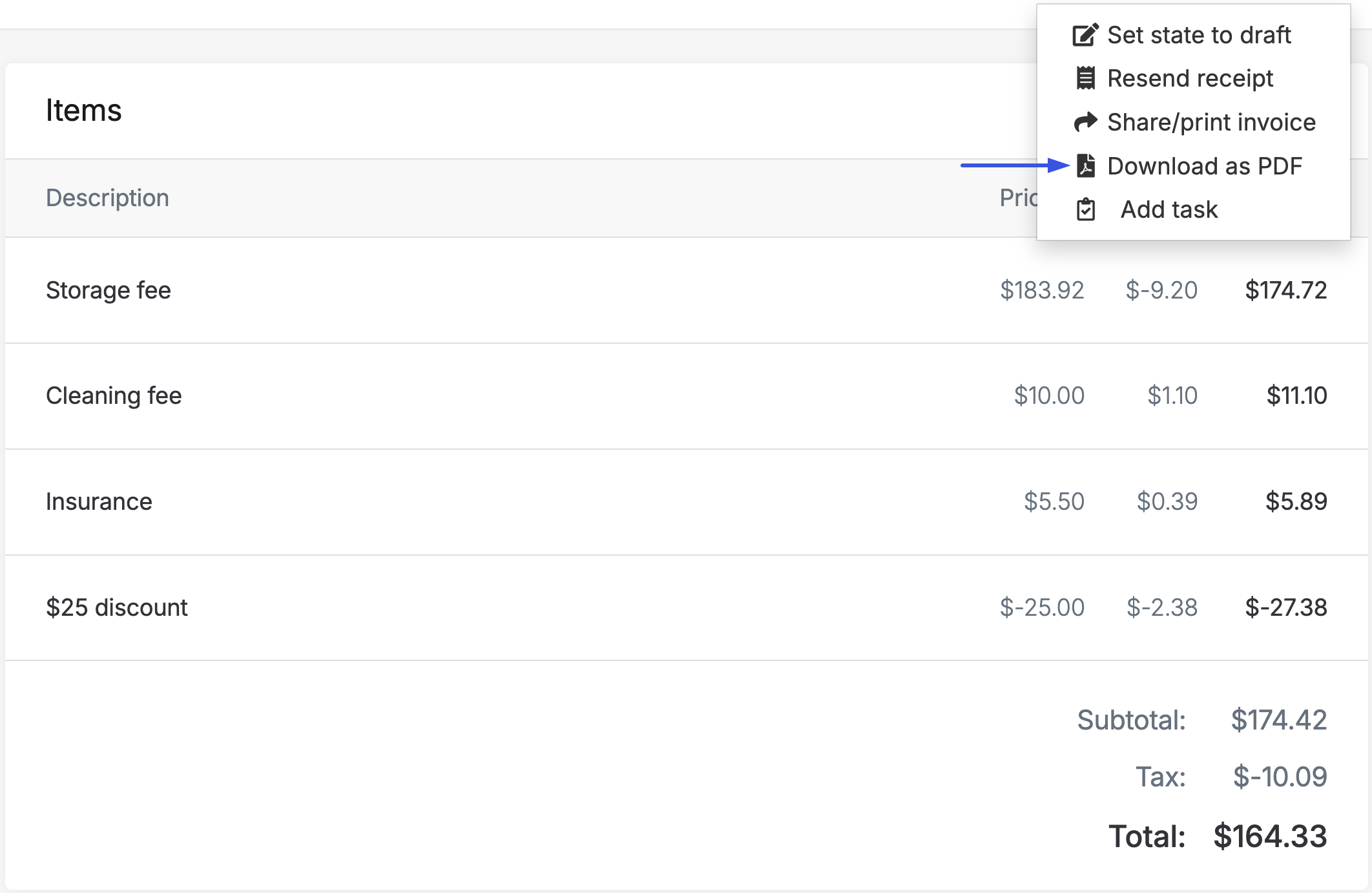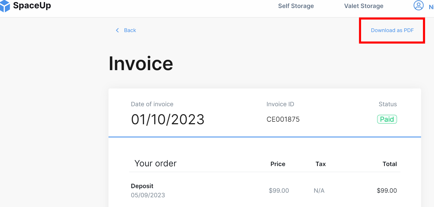 Invoices can be downloaded as PDFs too from the ⋮ icon menu.