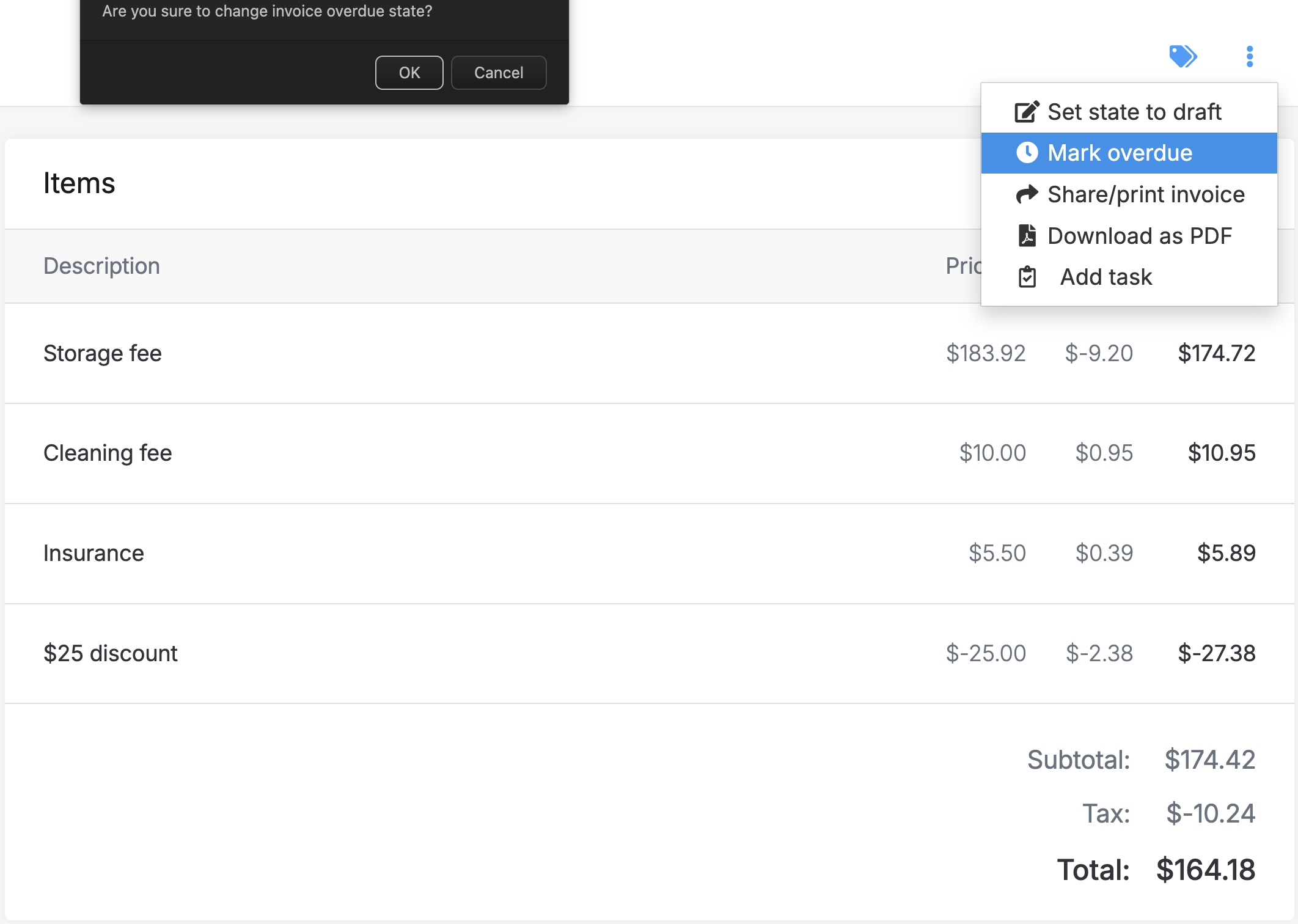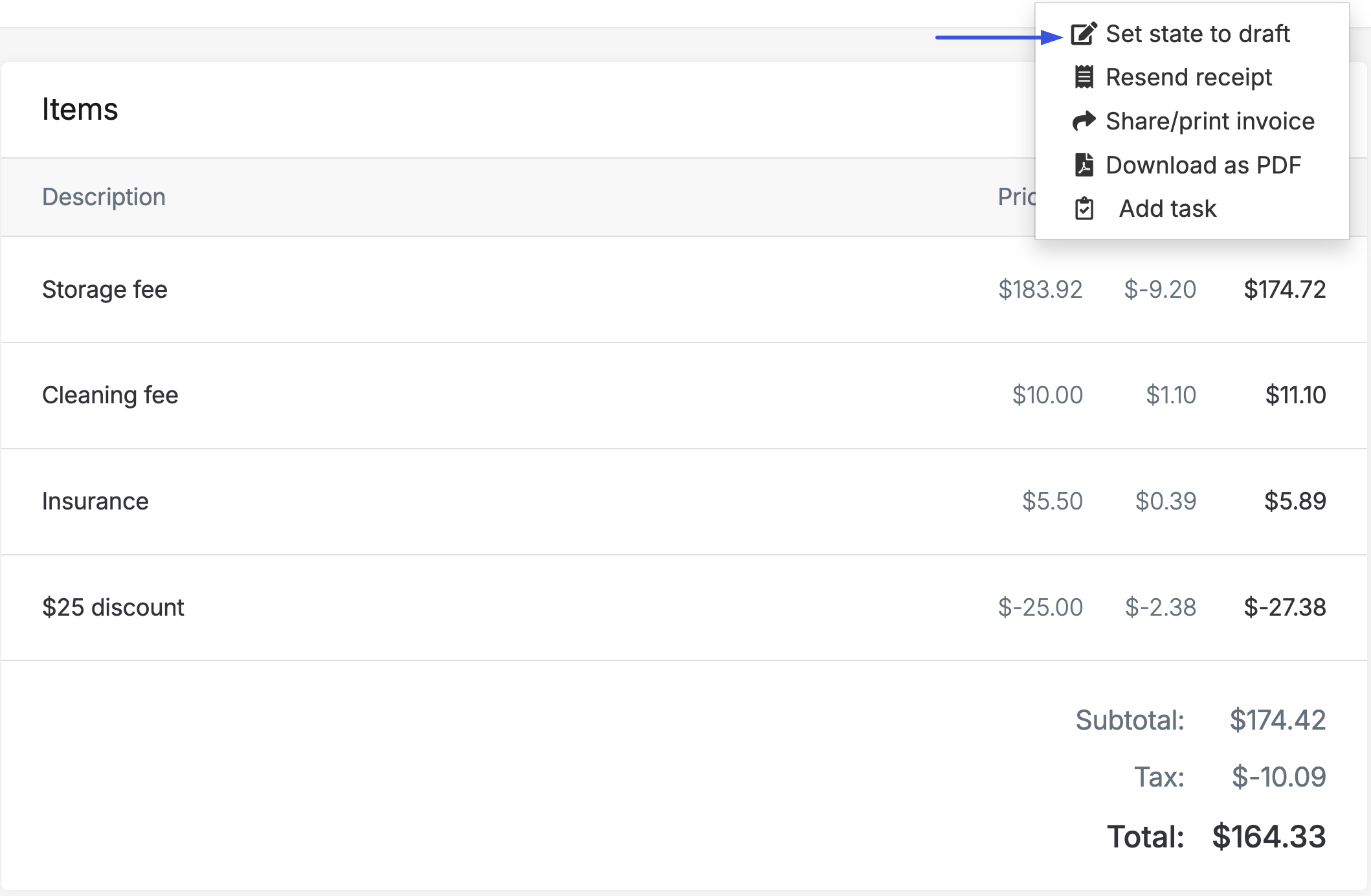 If you have an invoice that is in the sent or paid state that needs adjustment or to be deleted. You would need to first set it back to draft. Read more information here: Set invoice back to draft
