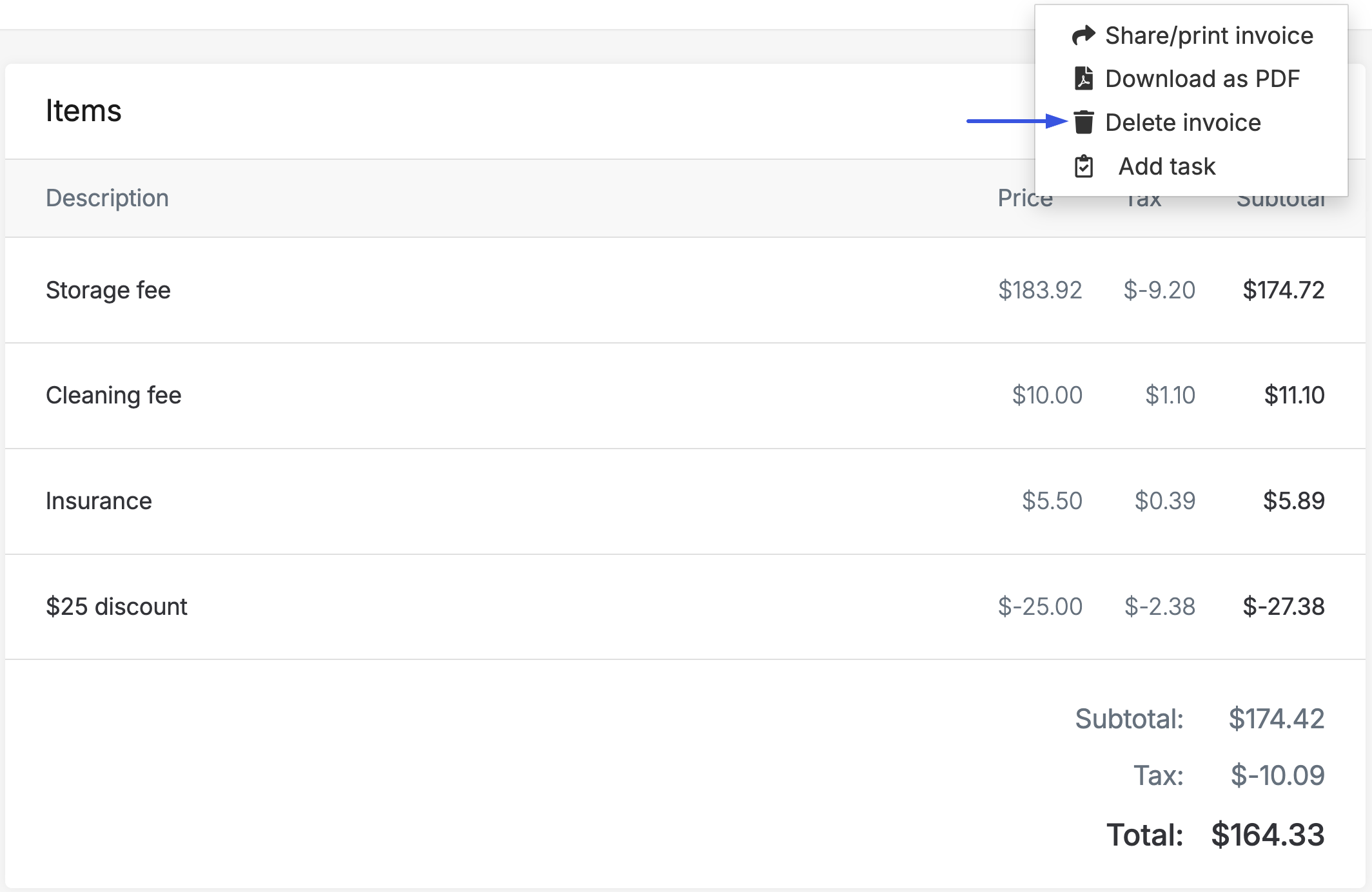 Note: Only users with a Manager role can delete invoices.