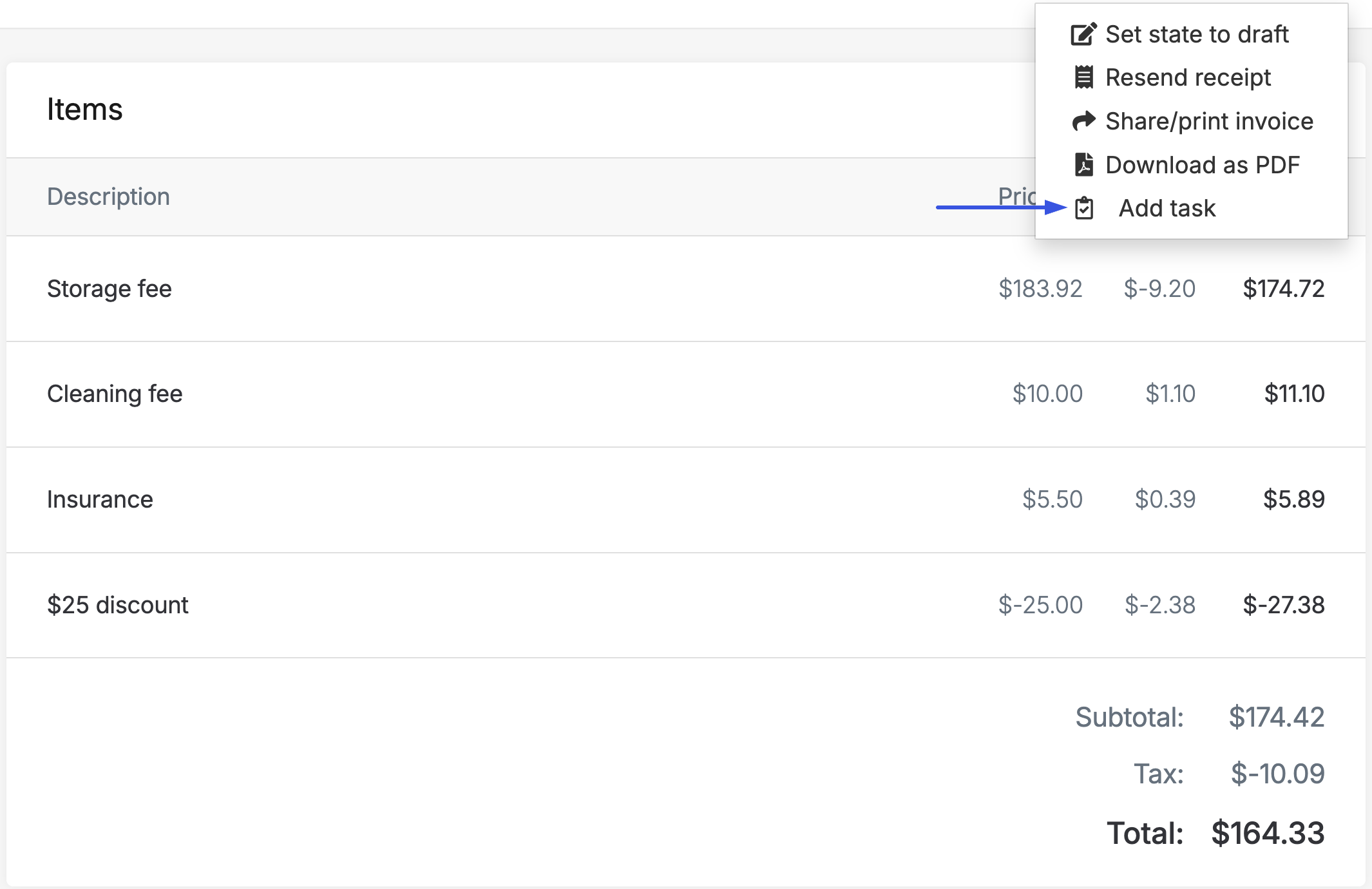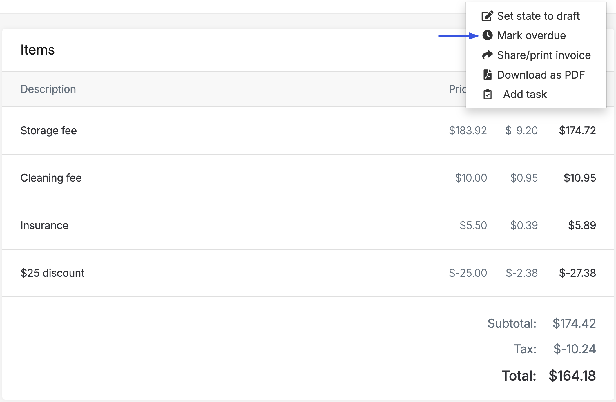 Invoice details, features, and functionality