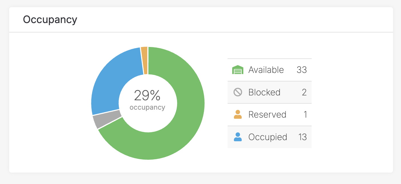 There is a breakdown in this section of the occupancy percentage of the unit type based on the 4 states of a unit: Available, Blocked, Reserved, and Occupied. This percentage is important as this is what drives the dynamic pricing feature.