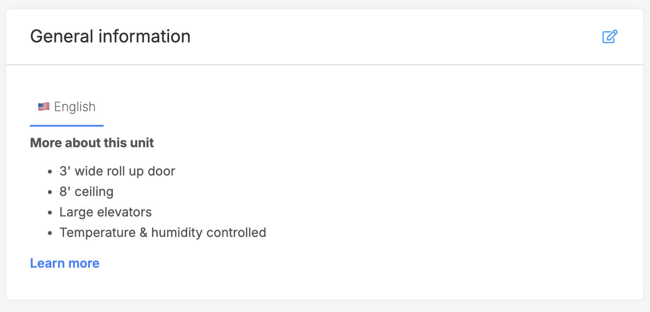 Enter more detailed information related to the unit type here. This is customer-facing information that displays in the booking portal. This section supports Markdown formatting as well as some simple HTML such as hyperlinks.