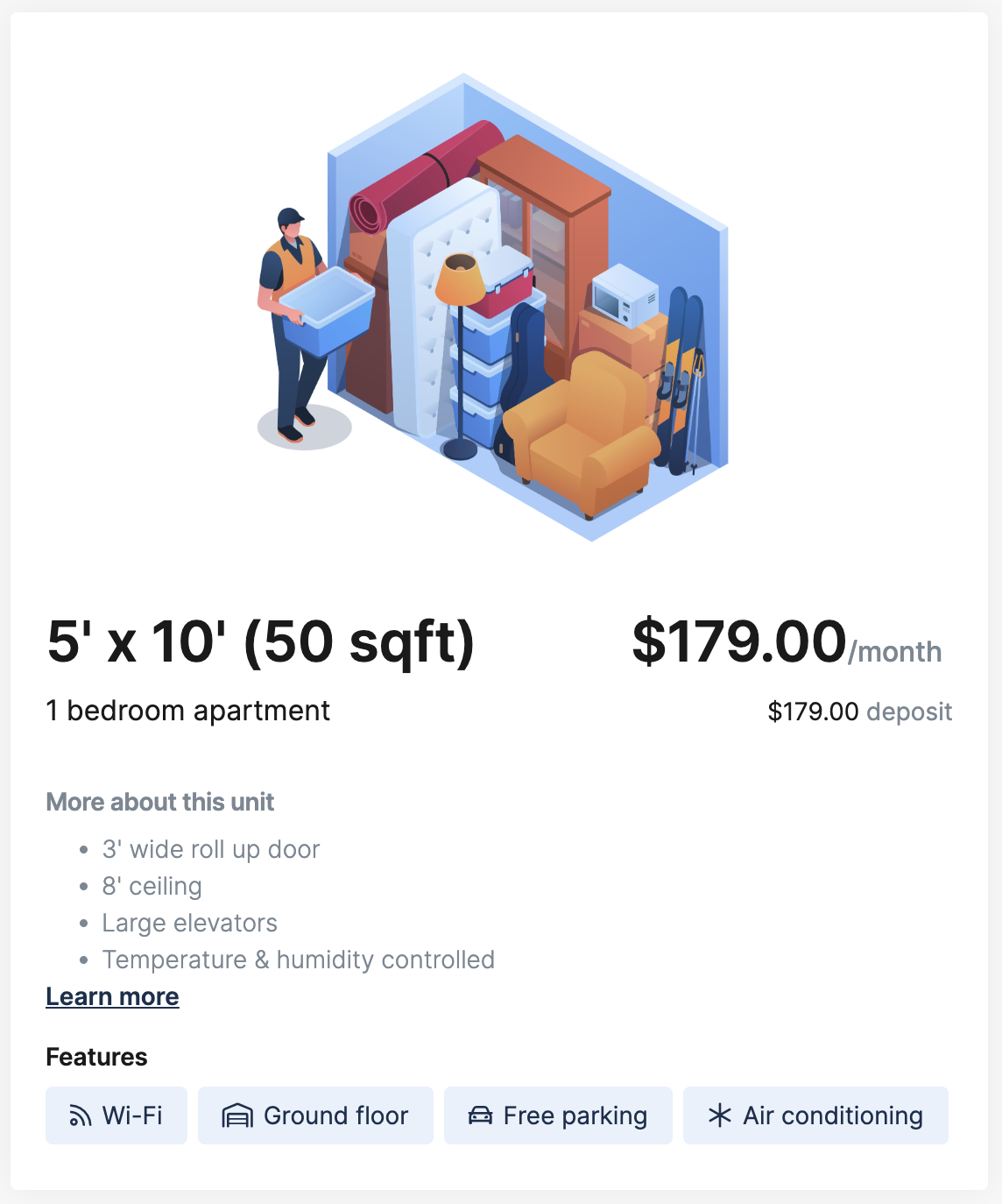 Unit types group individual units for the customer booking portal by size, price, or common features. Customers select a unit type instead of individual units in the booking portal. The system reserves and assigns the next available unit of that type during the booking process.