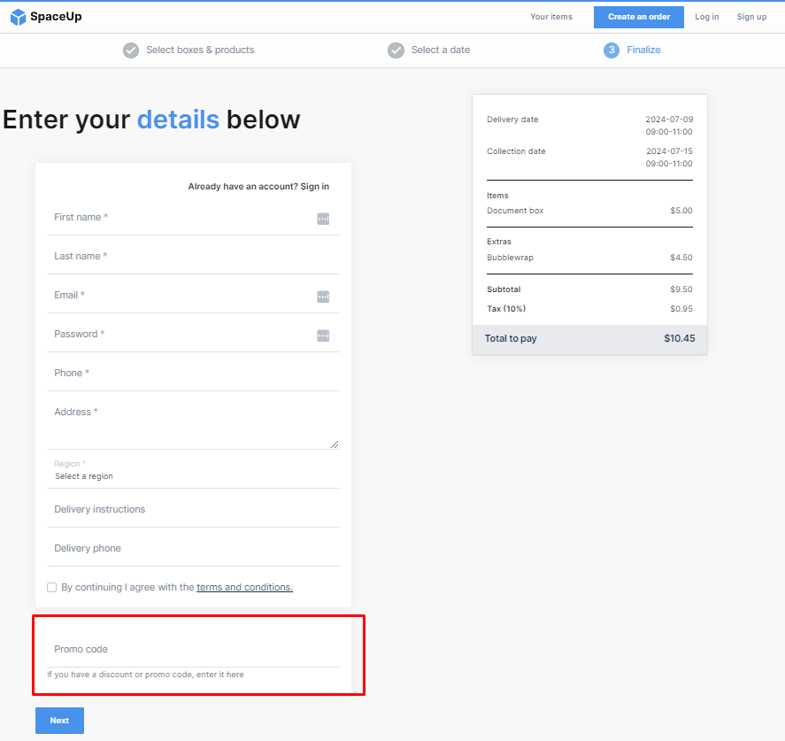 Using a promo code