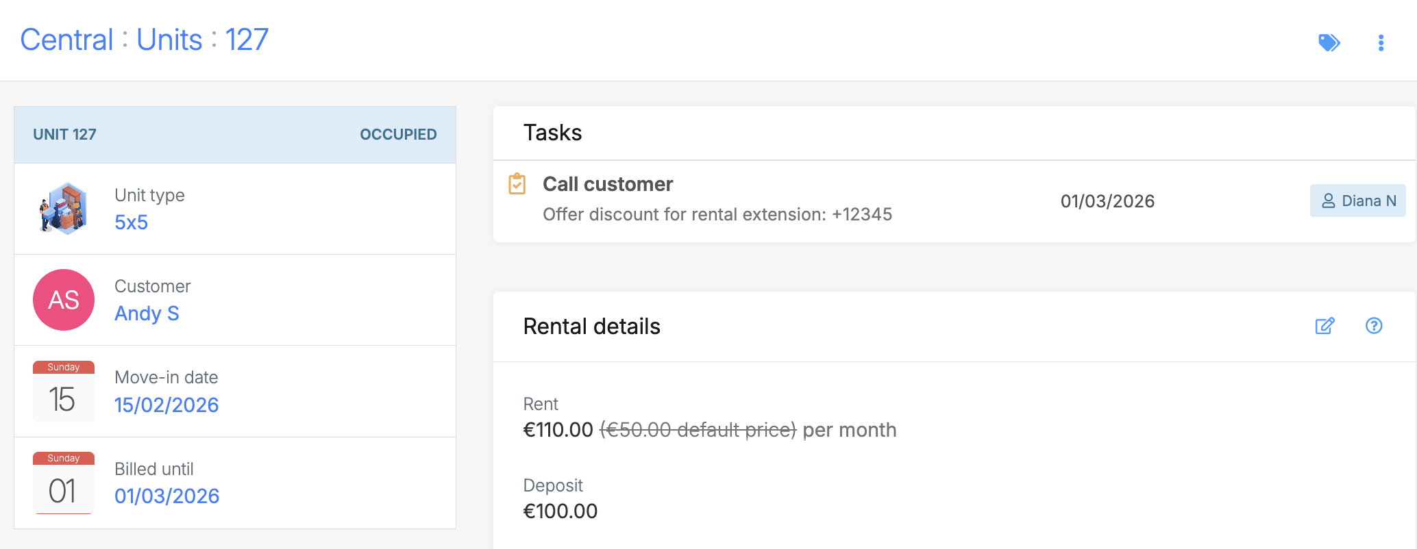 You can see the details of tasks/reminders that you've set up on the unit's page directly along with its description, due date, and assignee.