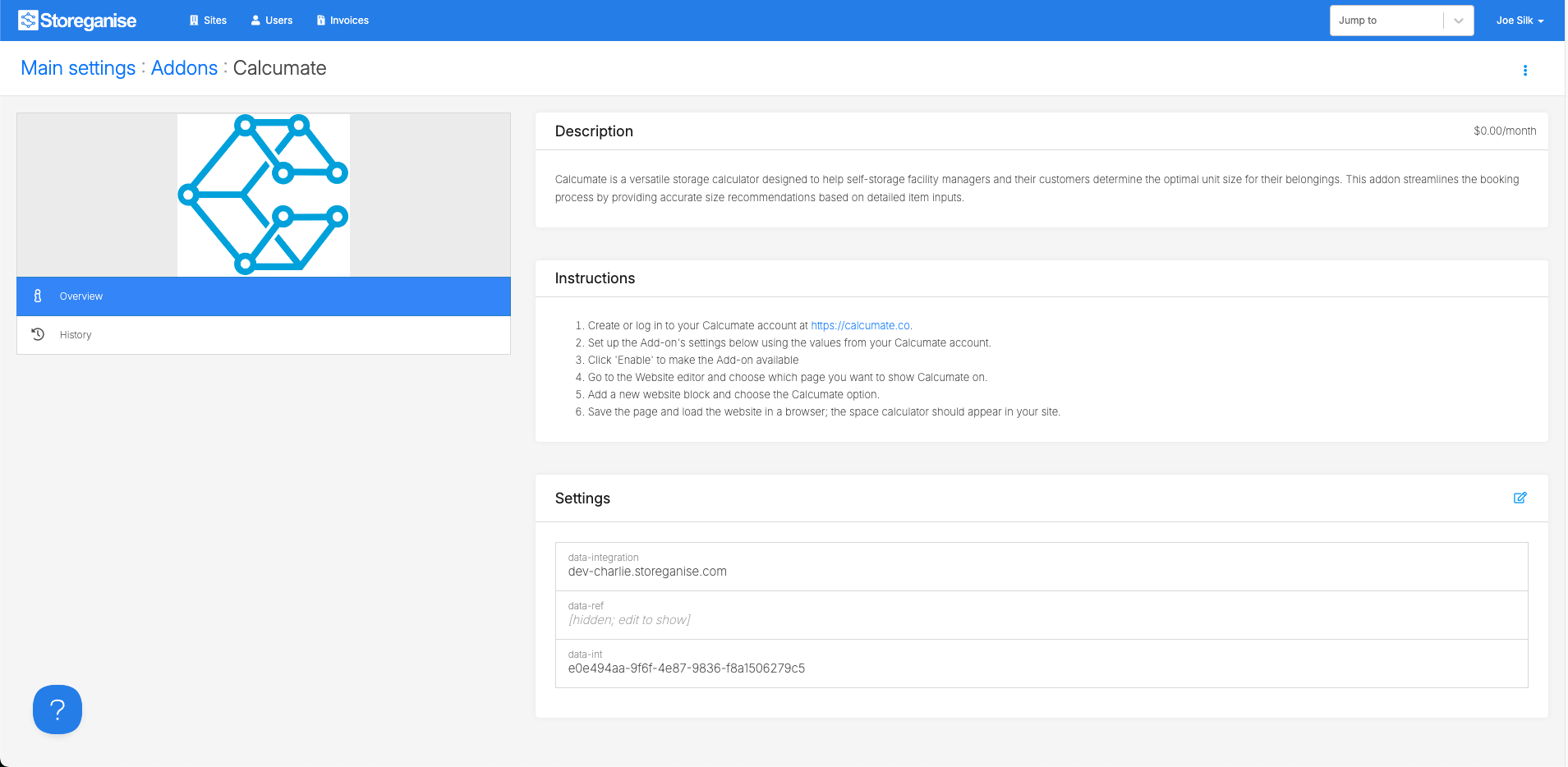 - This finalizes the connection between Calcumate and your Storeganise platform, allowing the calculator to function on your website.