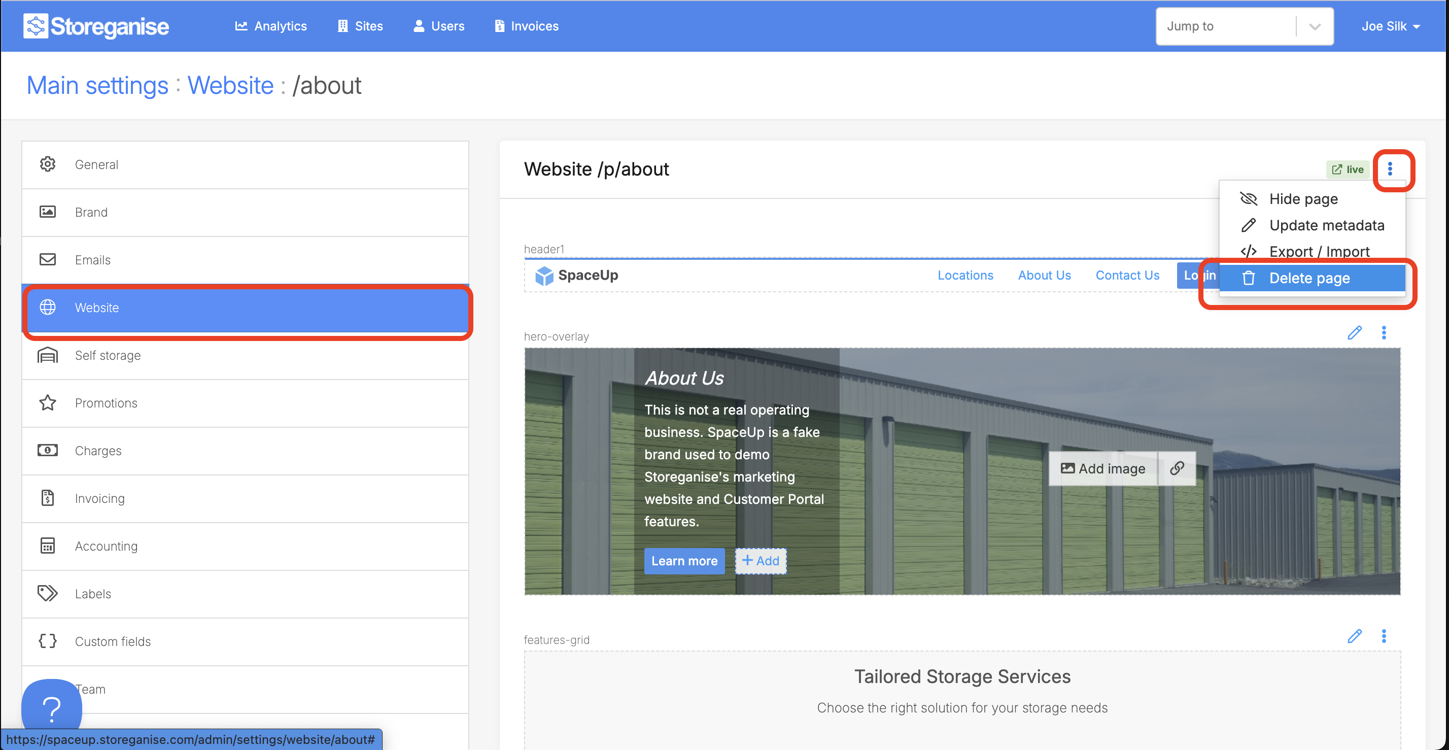 If you want to disable your Storeganise website, you must delete all the pages in the Website Builder. Failing to do so may result in continued charges for the Website Builder.