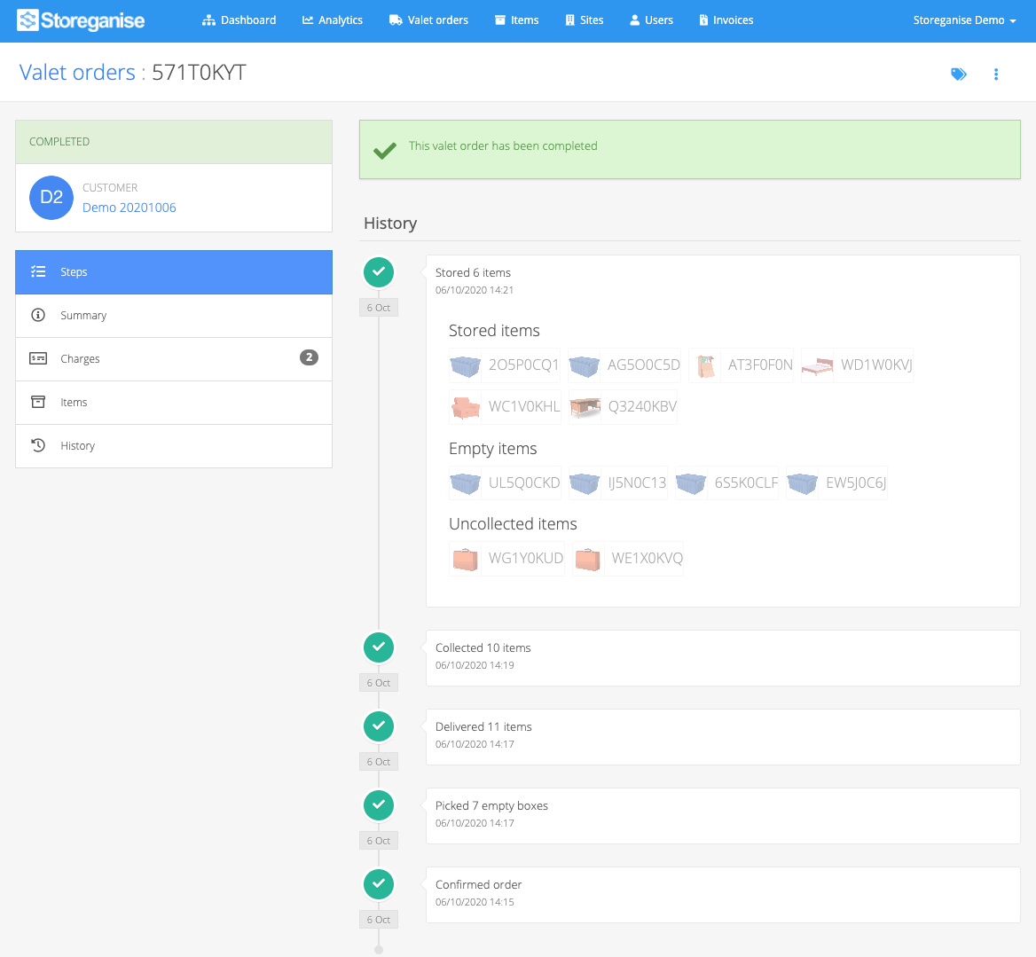 Valet Order Step: Store items in a warehouse