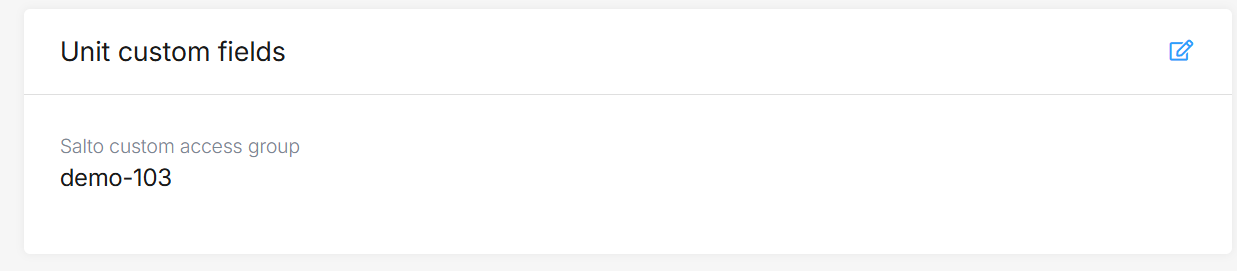 custom field Salto IDare mapped to their corresponding access group. This is shown asSalto custom access groupwithin the unit page on the custom field section.