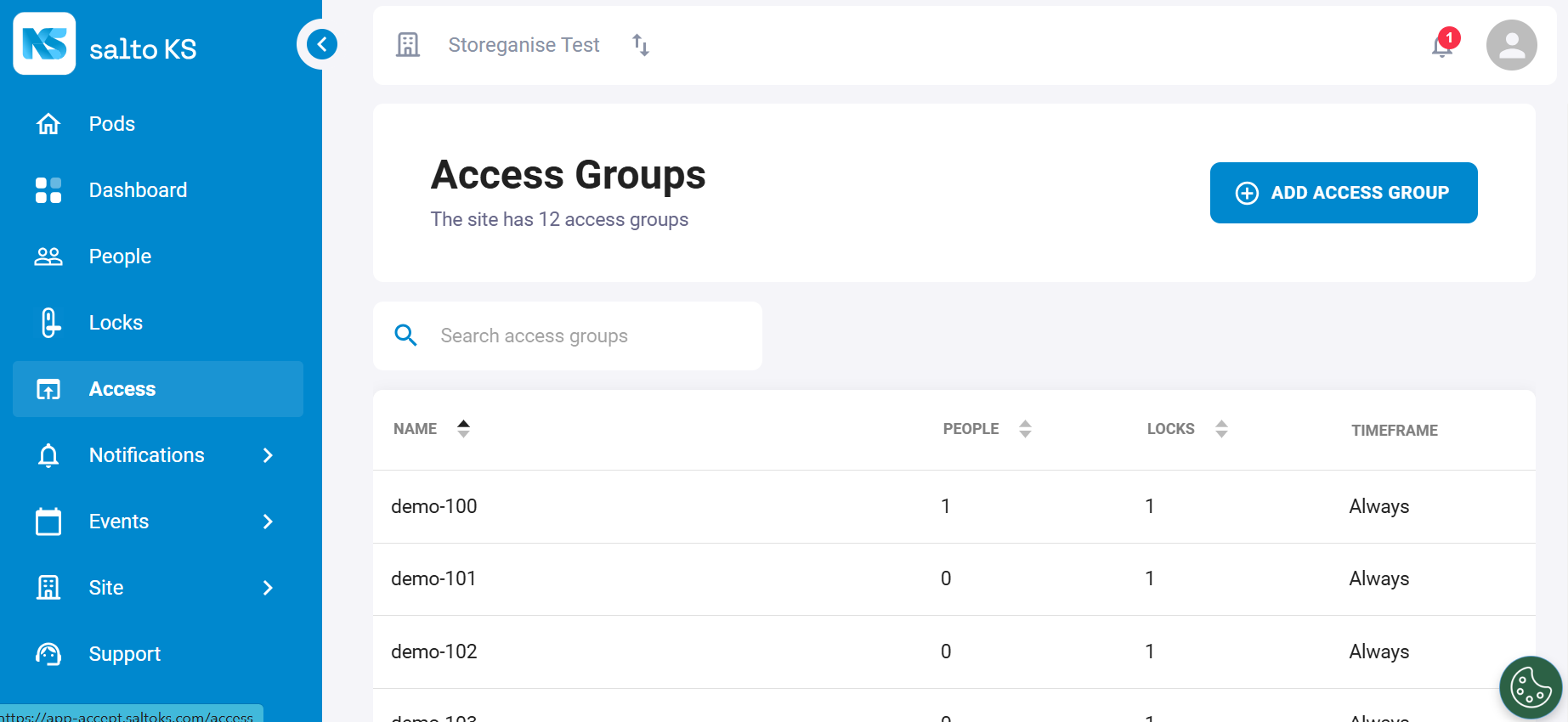 - Access groups loosely correspond to Storeganise Units. To view access groups, go to Sidebar > Access.