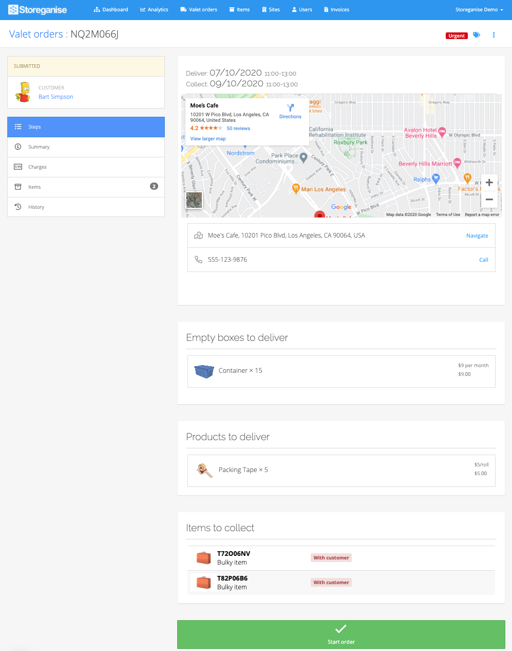 Valet Order Step: Pick empty boxes or items