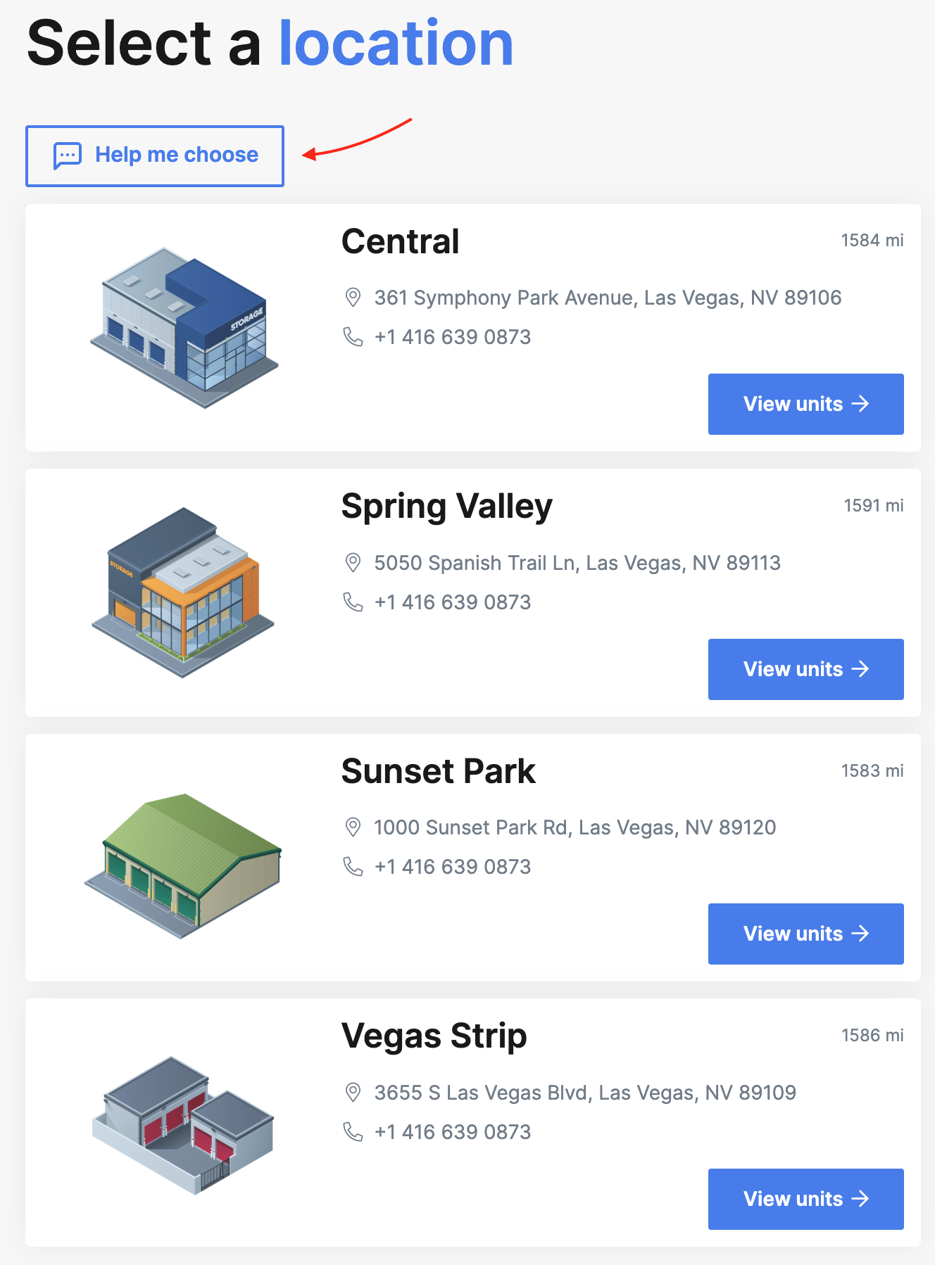 Clicking the dedicated Help me choose button found on the site and unit type selection pages