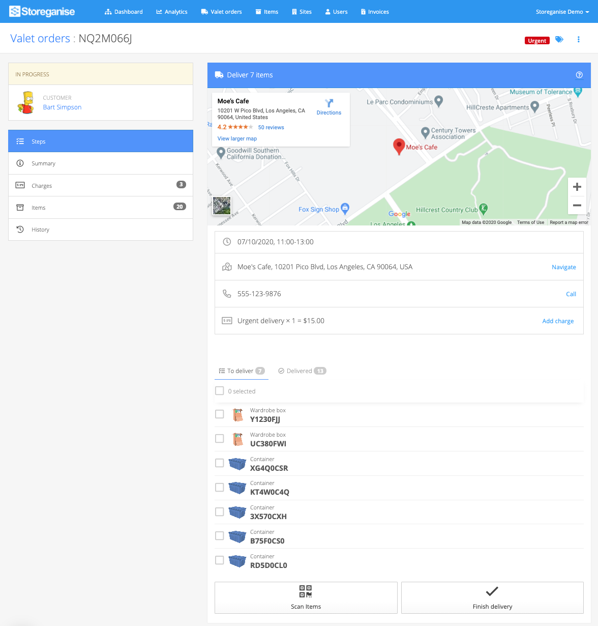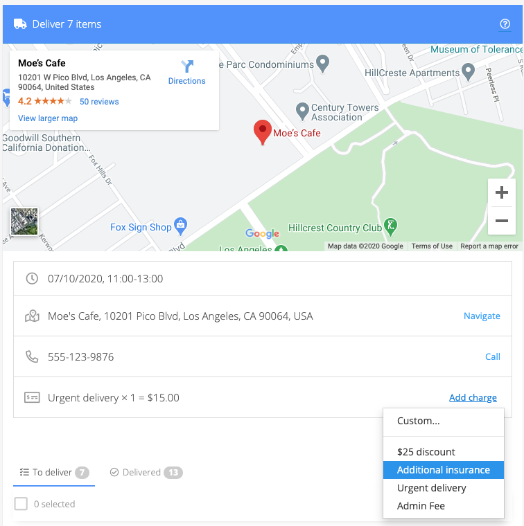 In the delivery step, click on Navigate or Directions to open Google Maps for navigation. Click on Call to directly call the customer's number.There are 2 tabs grouping items by their current state which you can switch between to see & update the different items in each state: